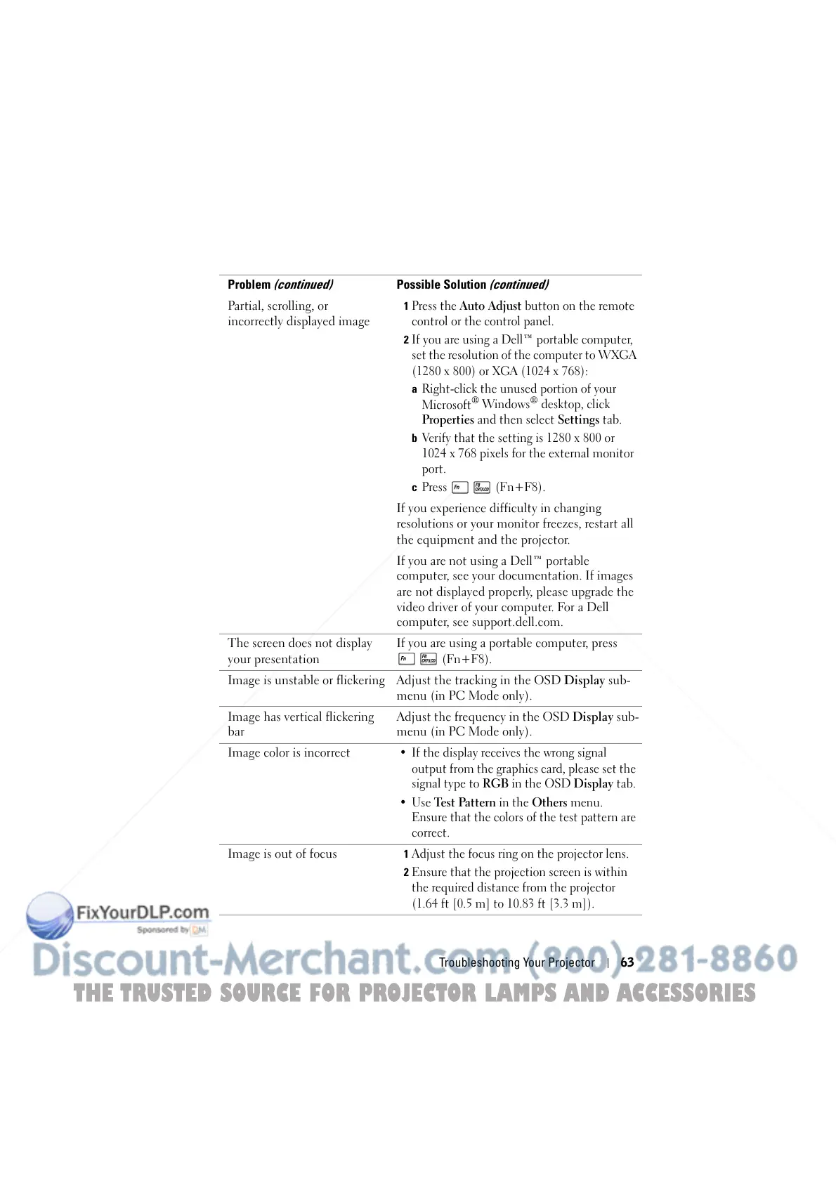 Troubleshooting Your Projector 63
