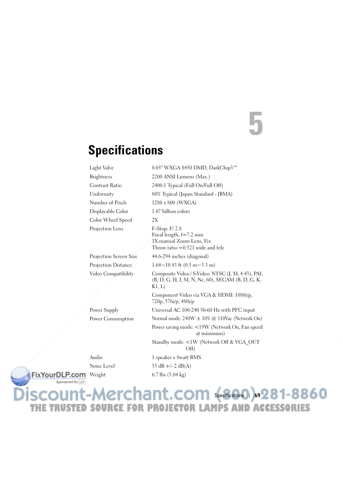 Brightness 2200 ANSI Lumens (Max.)
