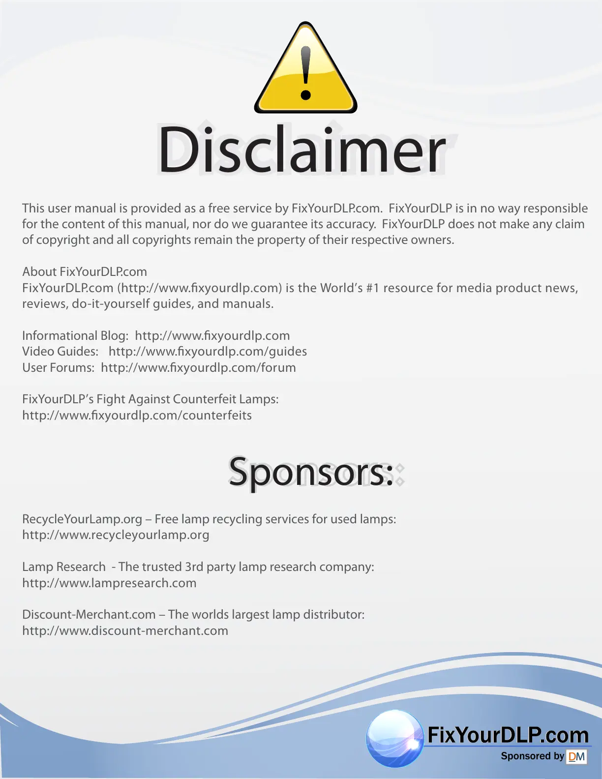 This user manual is provided as a free service by FixYourDLP.com. FixYourDLP is in no way responsible