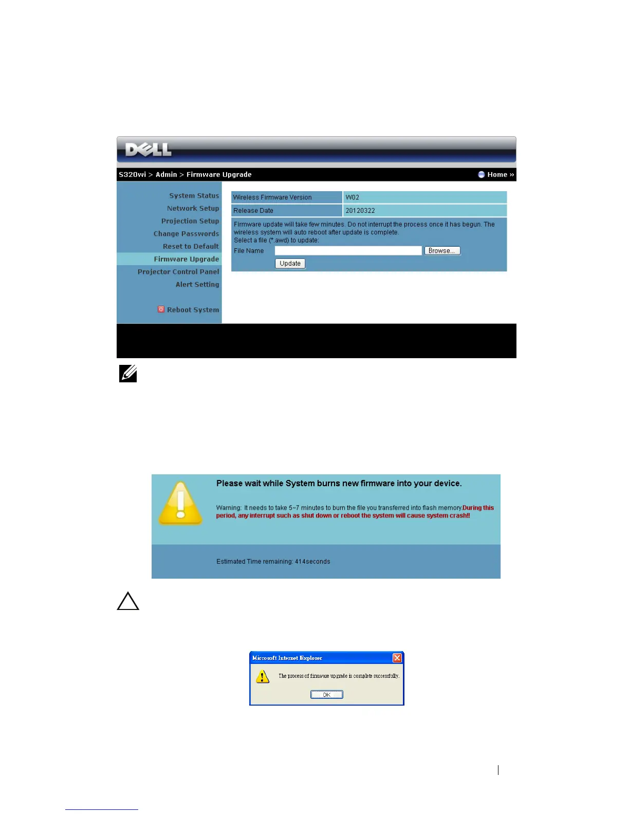CAUTION: Do not interrupt the update process as this may cause the system