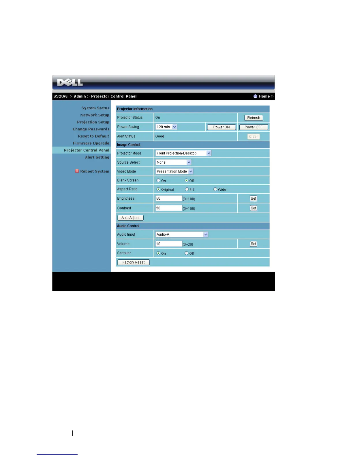 • Alert Status: There are three alert states: Lamp warning, Low lamp life, and