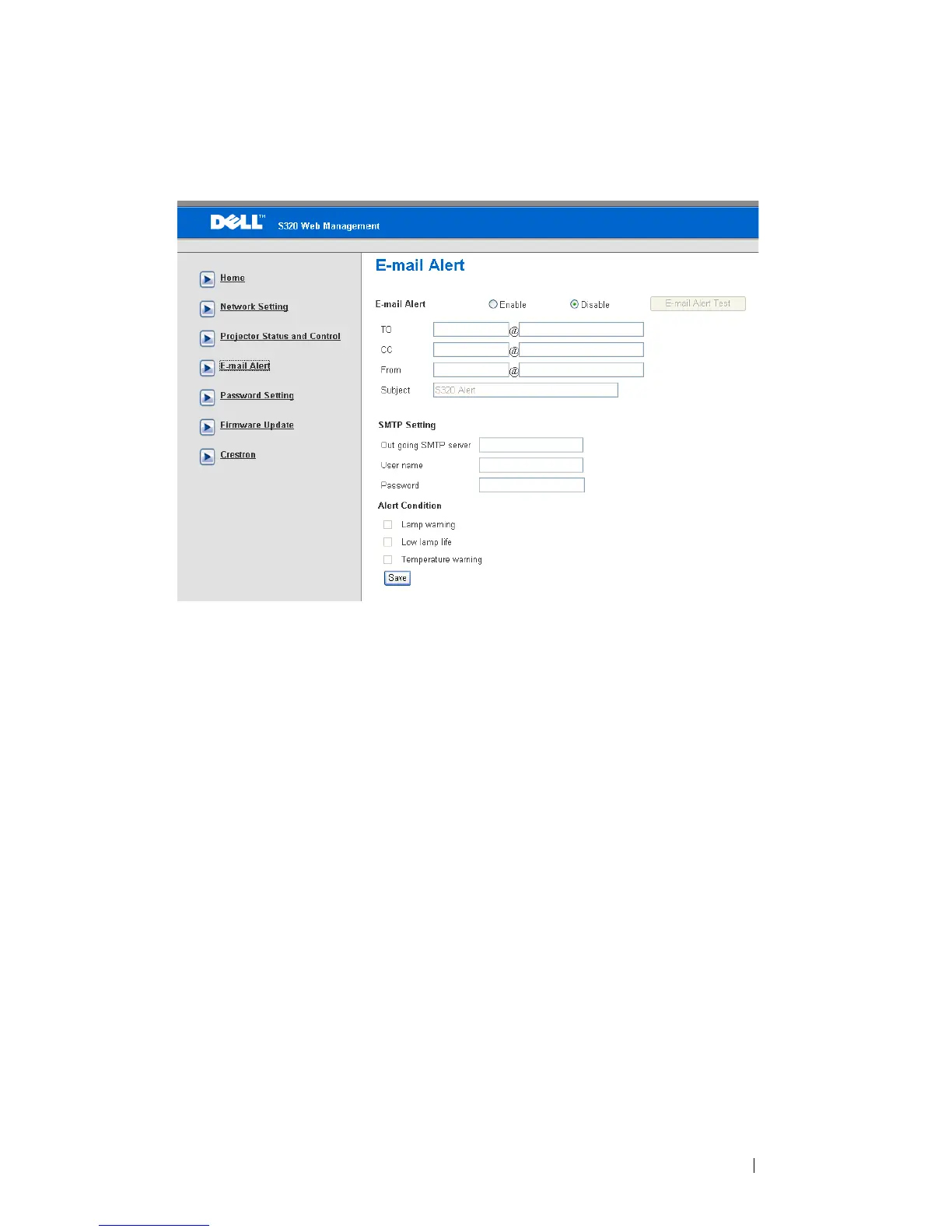 • E-mail Alert: You can set whether to be notified by email (Enable) or not
