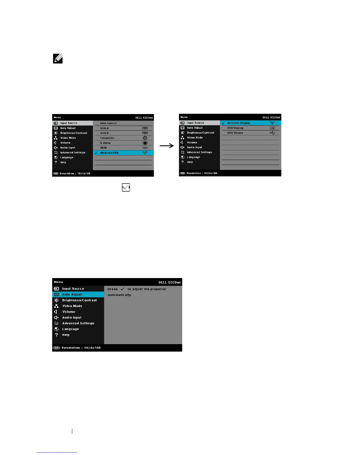 The Input Source Wireless/USB menu allows you to activate the Wireless Display,