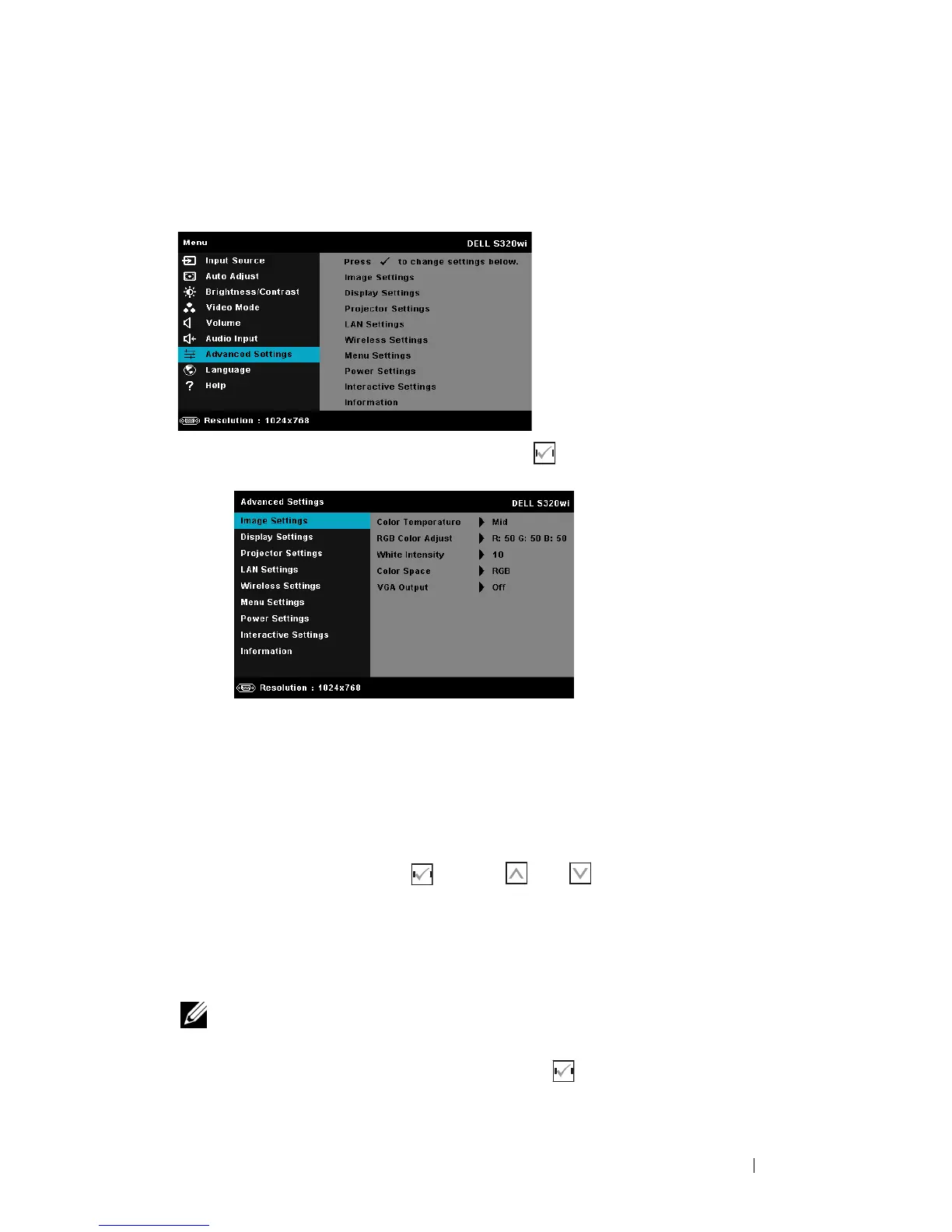 NOTE: If you adjust the settings for Color Temperature, RGB Color Adjust, and