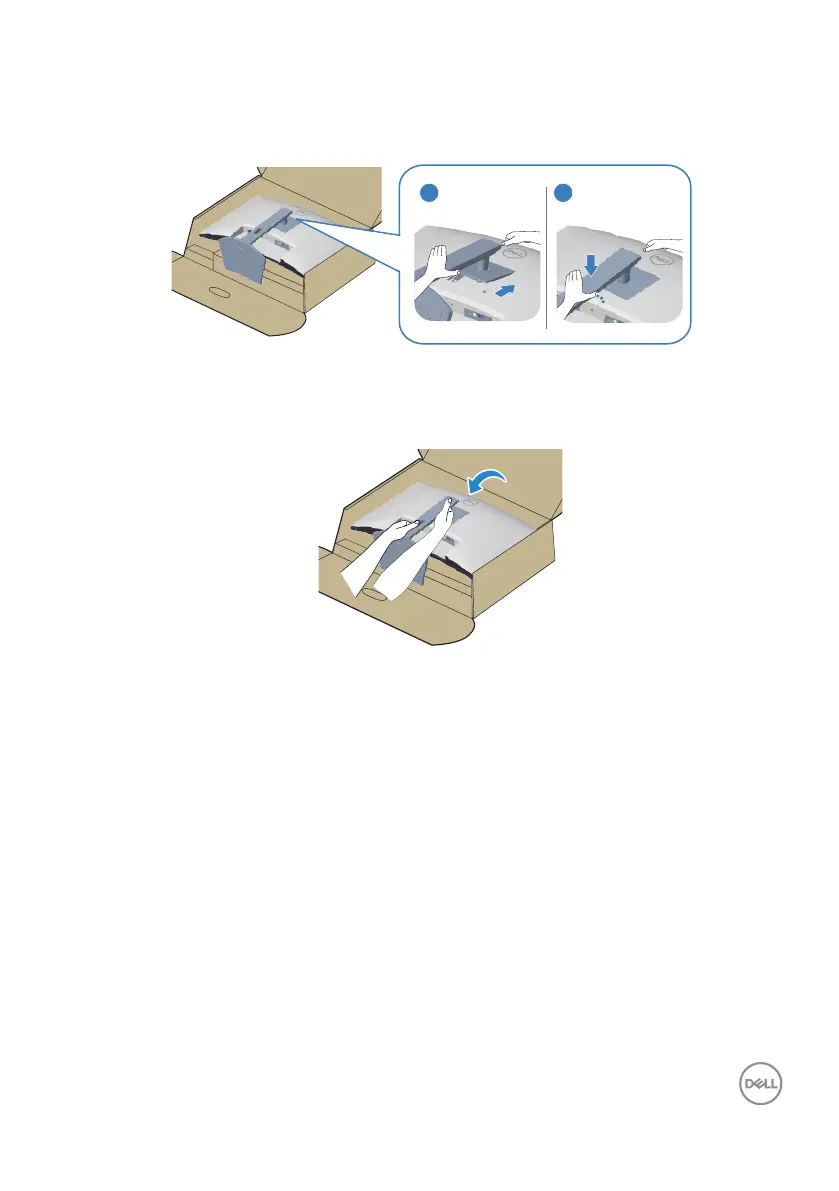 5. Slide the tabs on the stand assembly into the slots on the monitor and press the