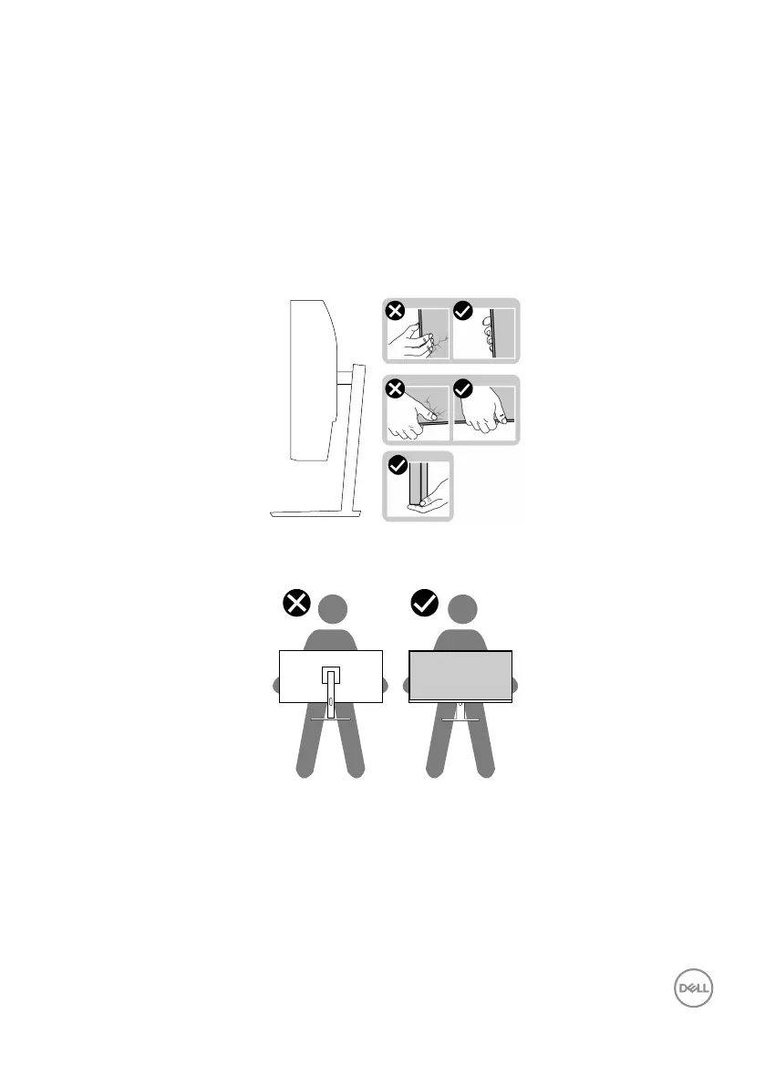 • When lifting or moving the monitor, ensure the screen is facing away from you