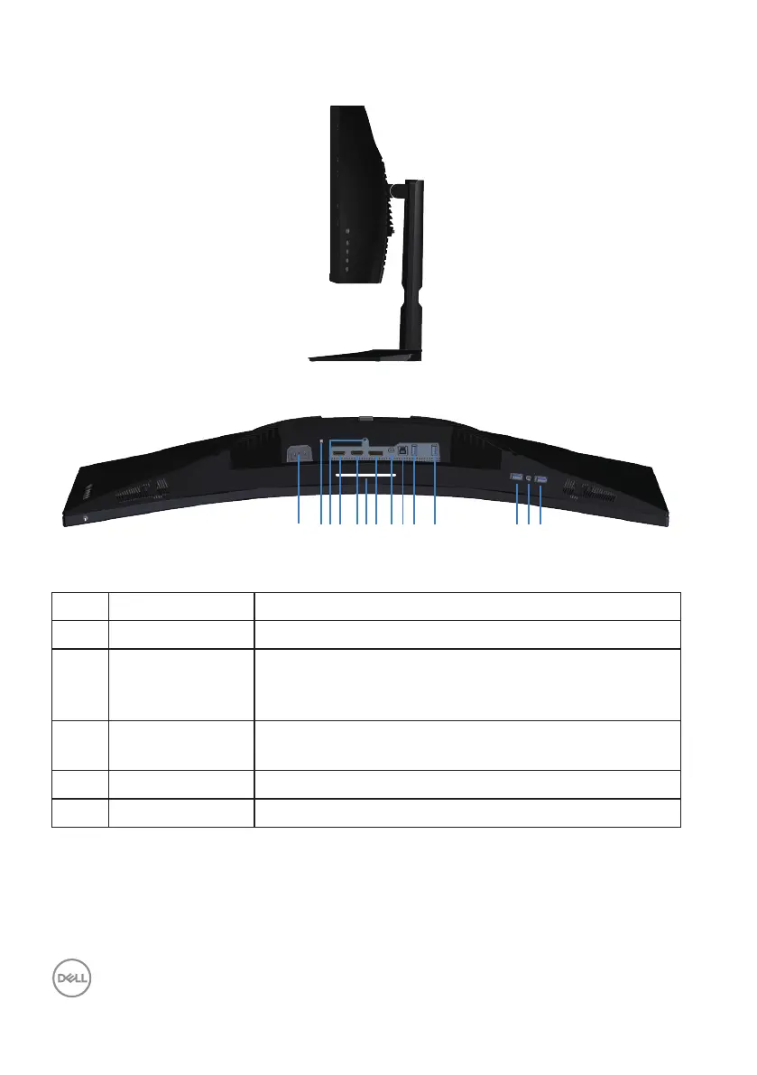 1 Power connector Connect the power cable (shipped with your monitor).