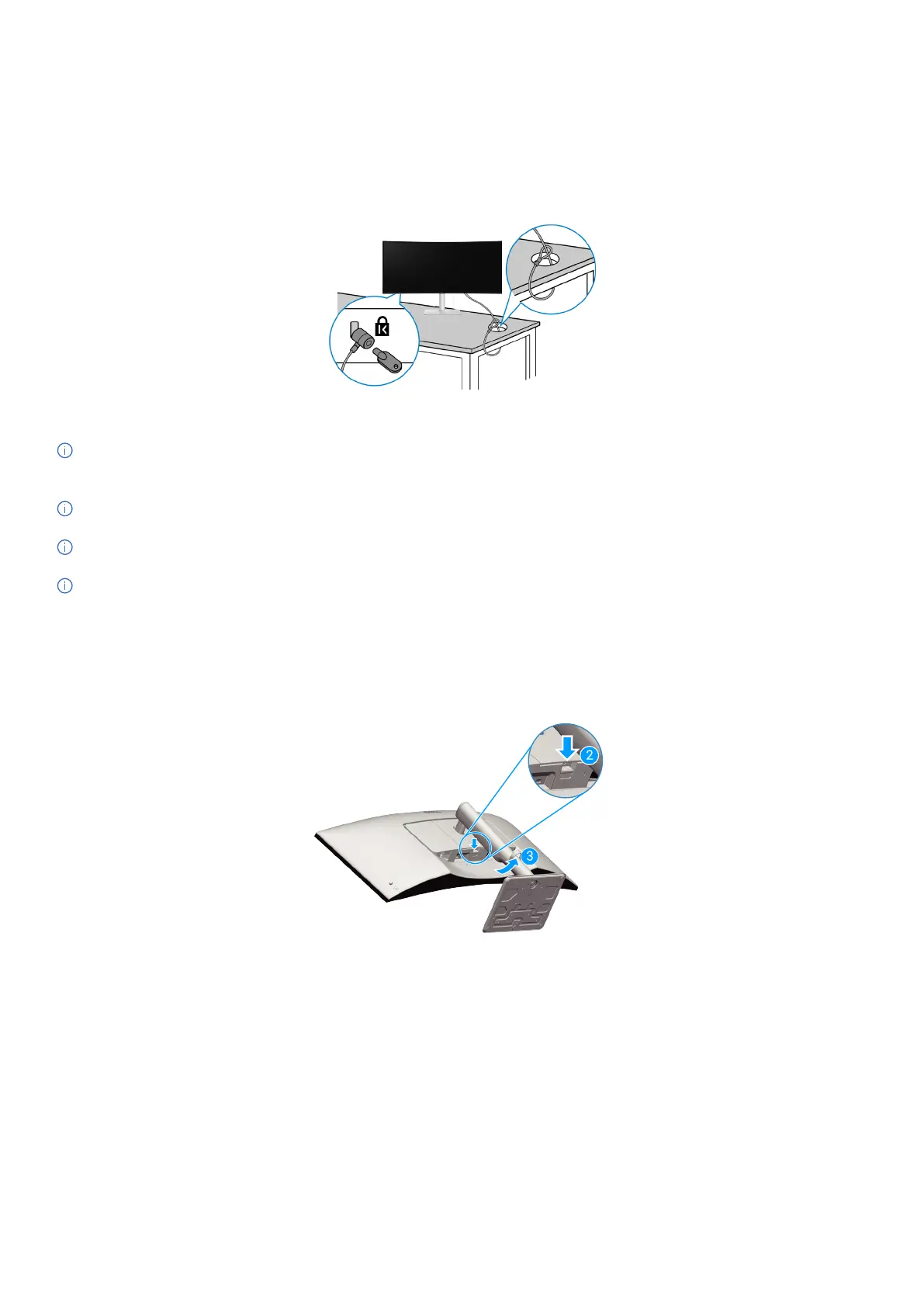The security-lock slot is located at the bottom of the monitor (see Security-lock slot). Secure your monitor to a table using the