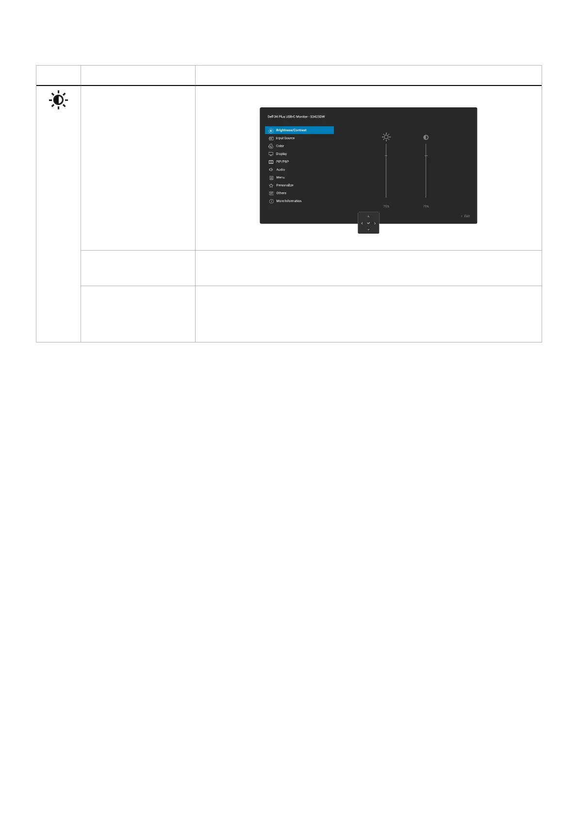 Brightness/Contrast Adjusts the brightness and the contrast of the display.