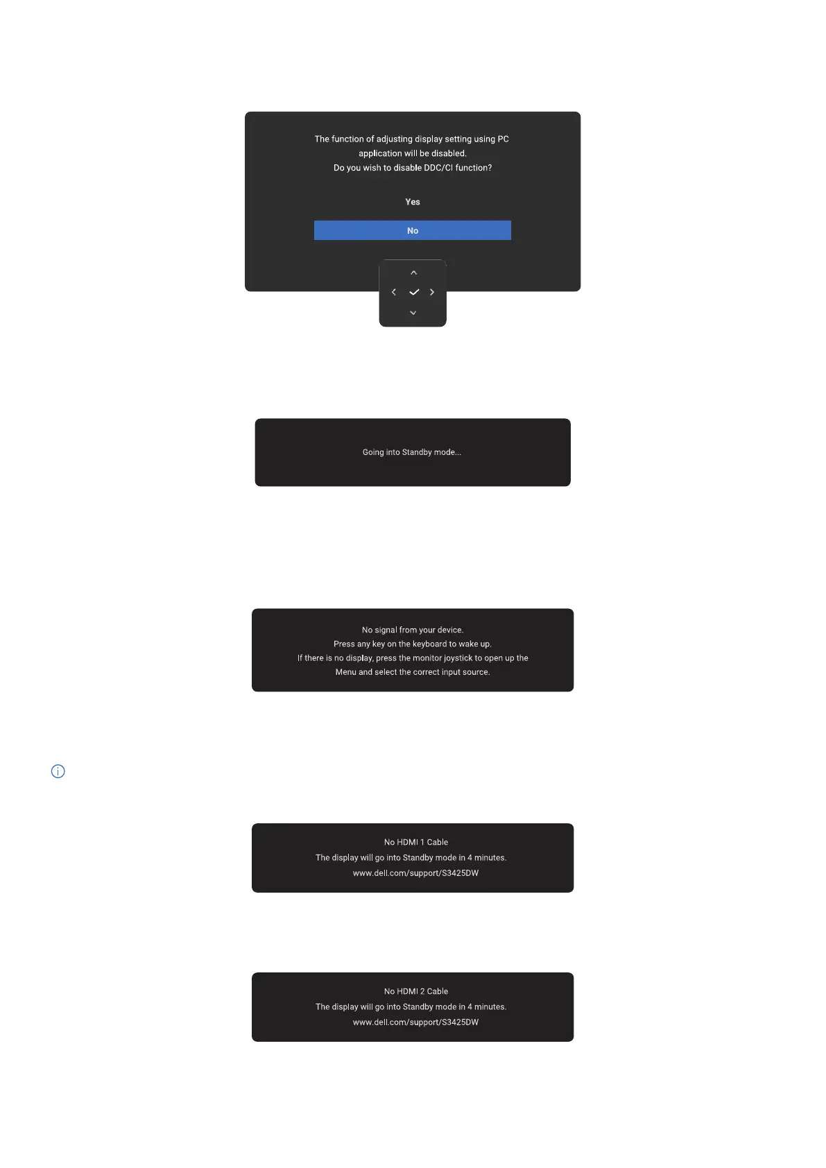 The OSD functions only in the normal operation mode. If you press the joystick during the Standby mode, the following message