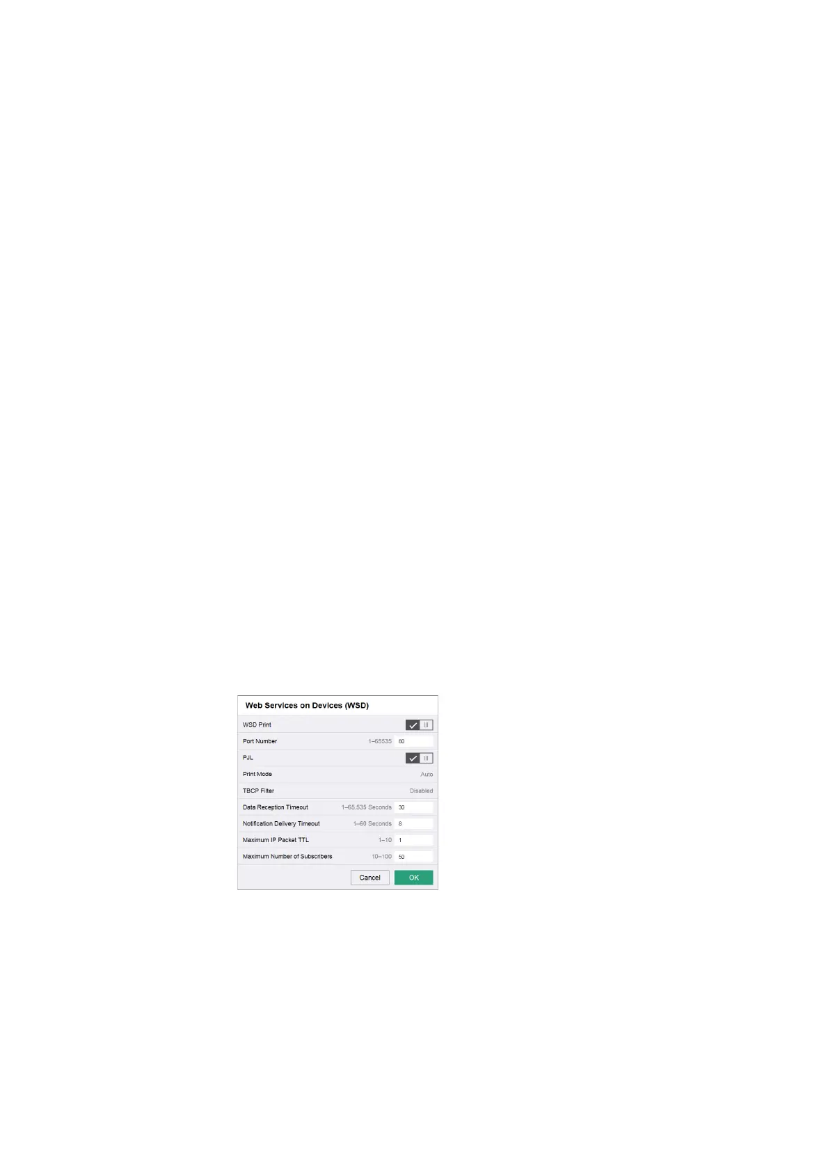 This feature is for Web Services on Devices (WSD) Print, and is enabled by factory default.