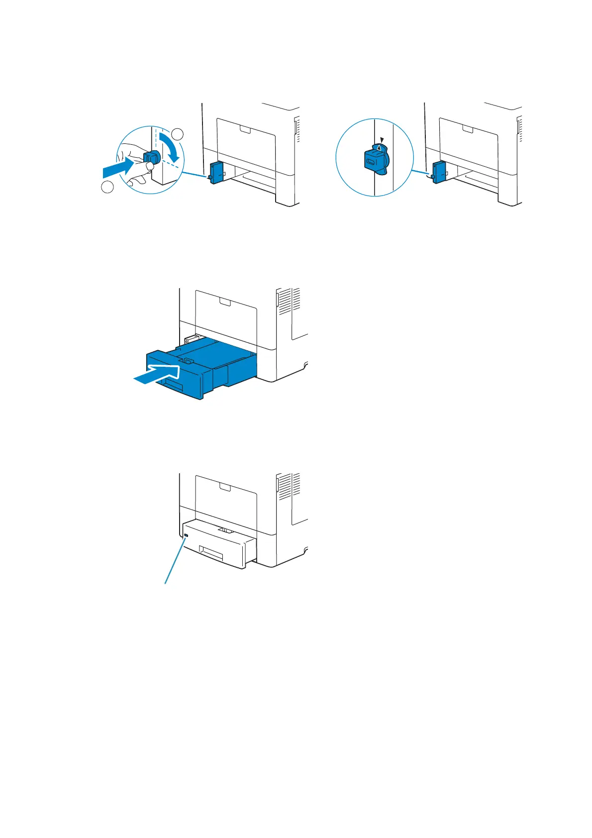 4 Push and rotate the stopper 90 degrees clockwise until the triangle on the stopper