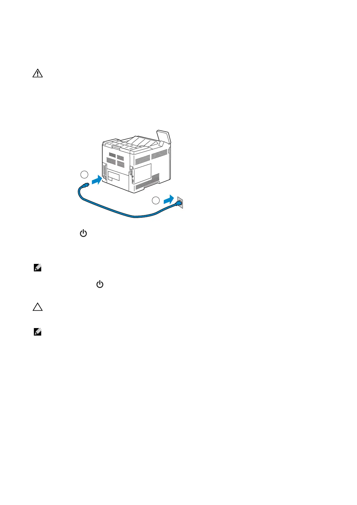 1 Connect the power cable to the power inlet on the rear of the printer, and then to a
