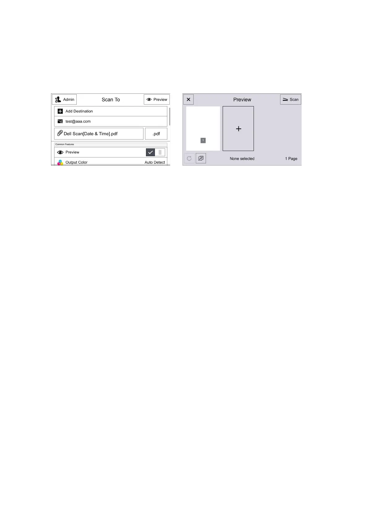 When Preview is enabled on the screen of a scan service, the Preview button is