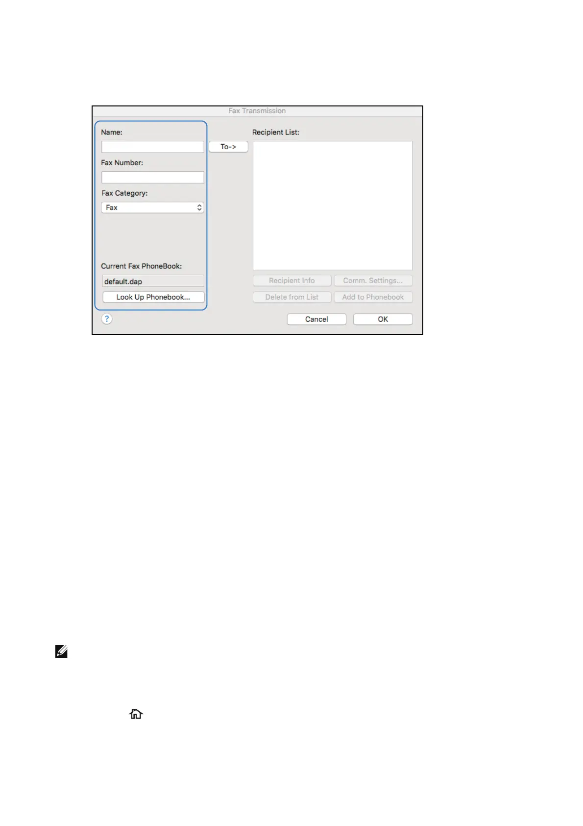 • Look Up Phonebook...: Clicking this button displays the Fax Phonebook dialog box.