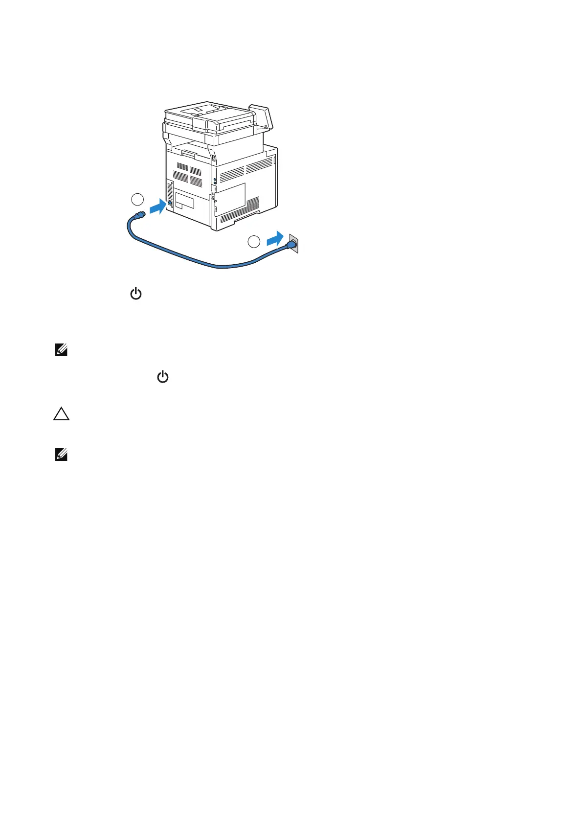 1 Connect the power cable to the power inlet on the rear of the printer, and then to a