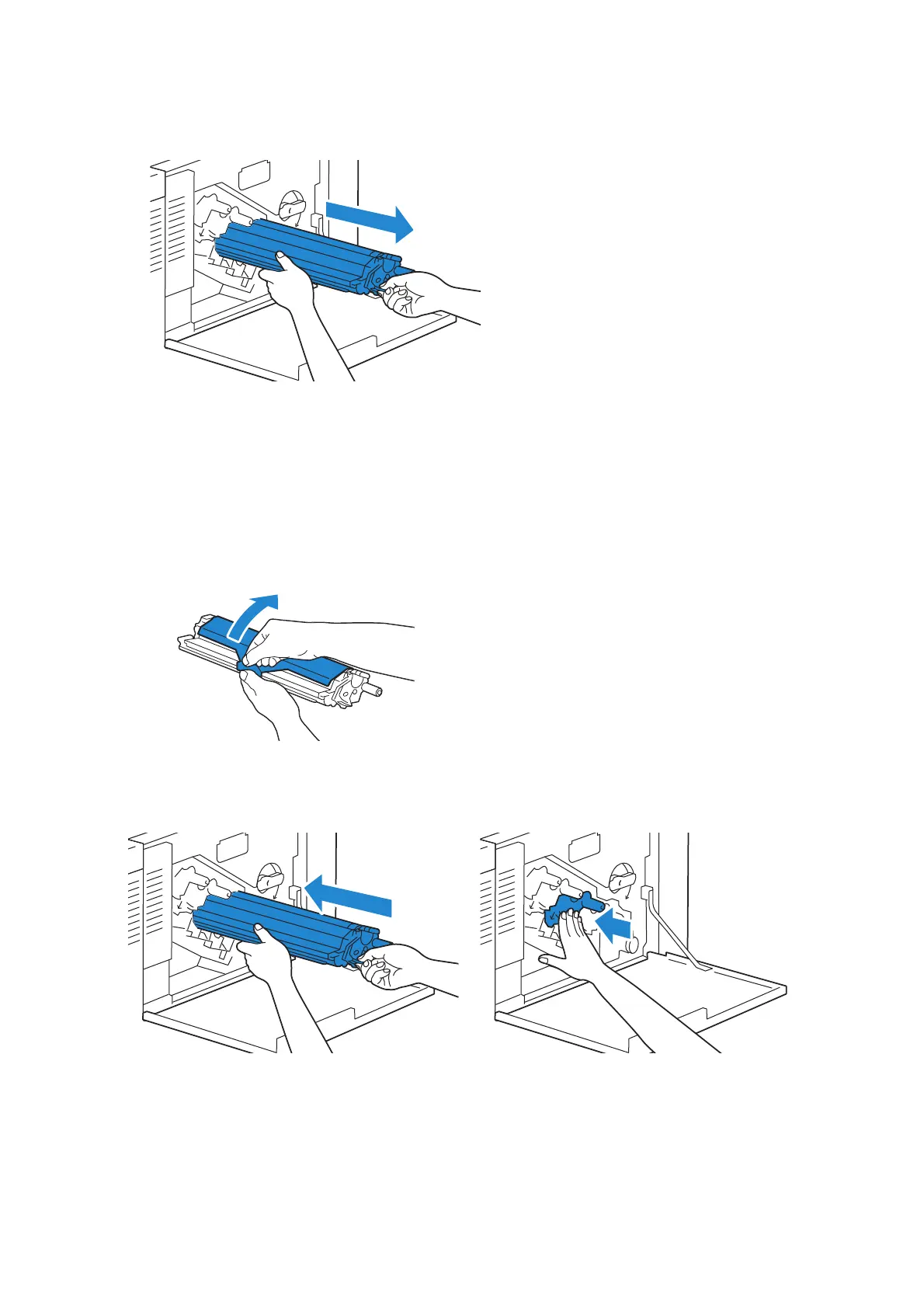 6 Support the drum cartridge with the other hand from underneath, and then pull it out