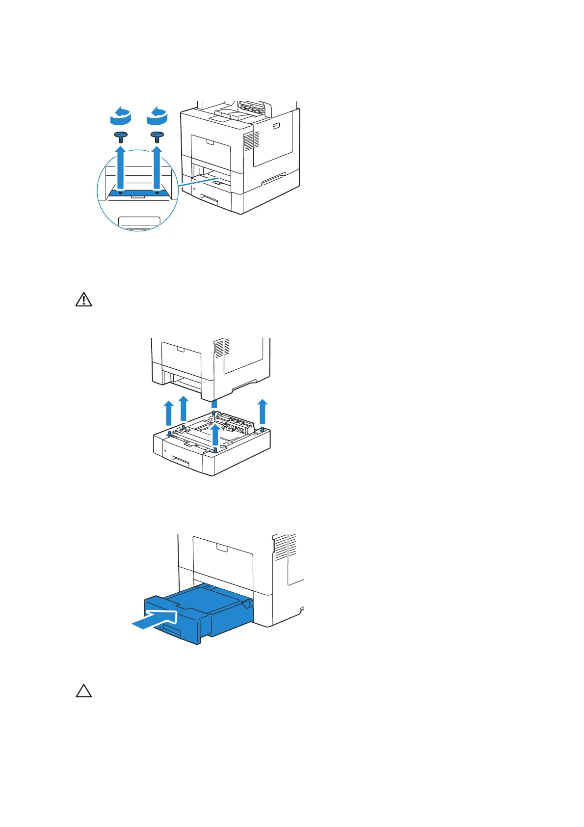 4 Remove the two screws joining the printer and the optional 550-sheet feeder by