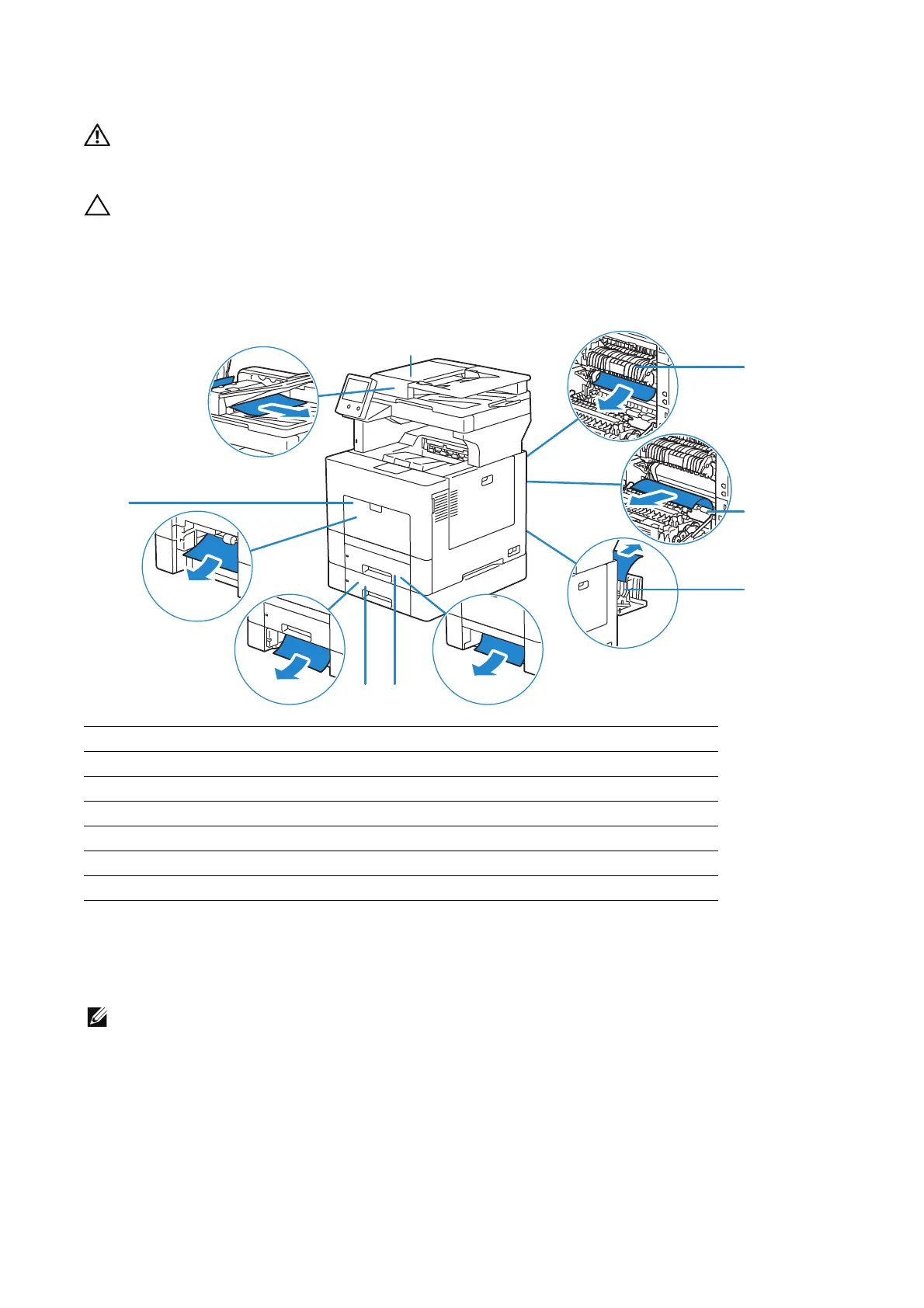 • Do not attempt to clear any jams using tools or instruments. This may permanently damage the