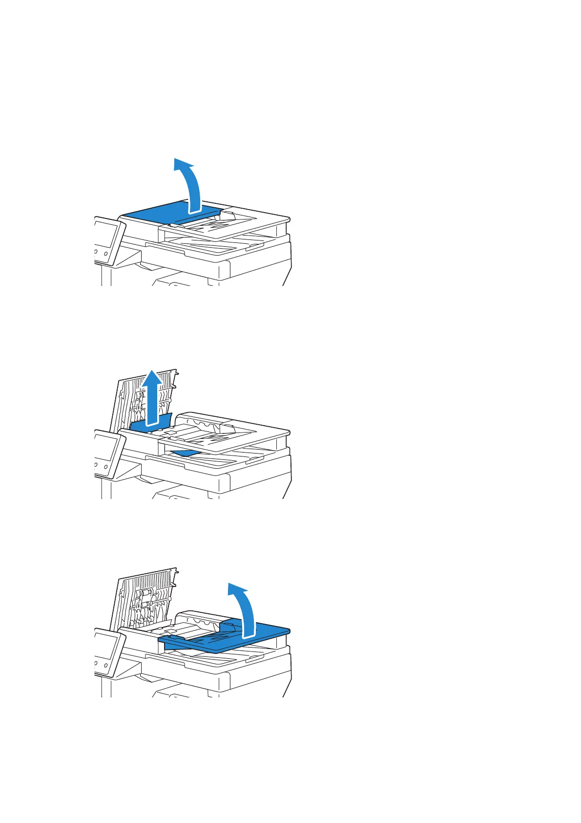 3 Remove any jammed documents from inside the DADF cover by gently pulling the