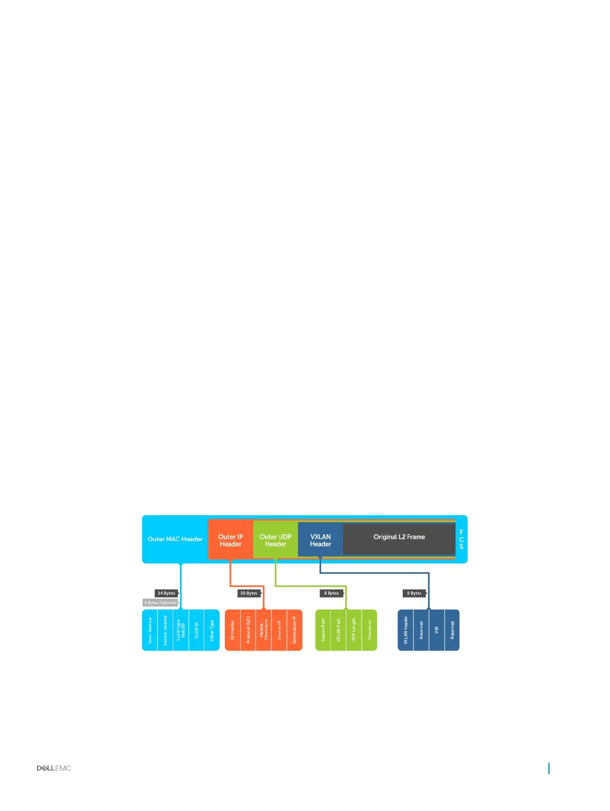called VXLAN Network Identier (VNI). This 24–bit ID allows up to 16 million VXLAN segments to coexist within the same administrative