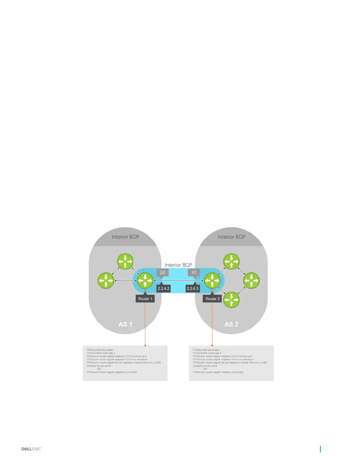 For example, the following illustration shows a sample BFD conguration on Router 1 and Router 2 that use eBGP in a transit network to