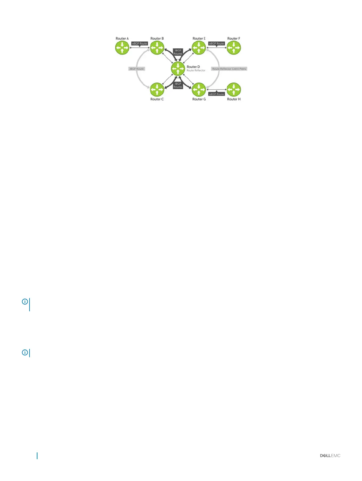 4 Router D does reect the advertisement to Routers E and G because they are client peers of Router D.
