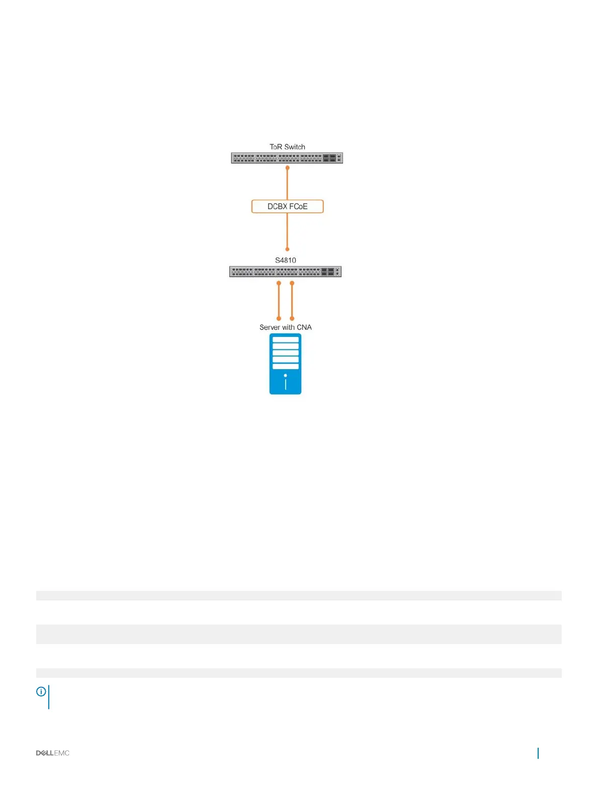 The DCBx conguration on the FCF-facing port is detected by the server-facing port and the DCB PFC conguration on both ports is