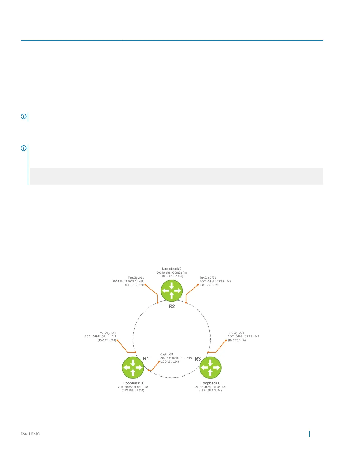 • Multi-topology — You must congure the IPv6 address. Conguring the IPv4 address is optional. You must enable the ipv6 router