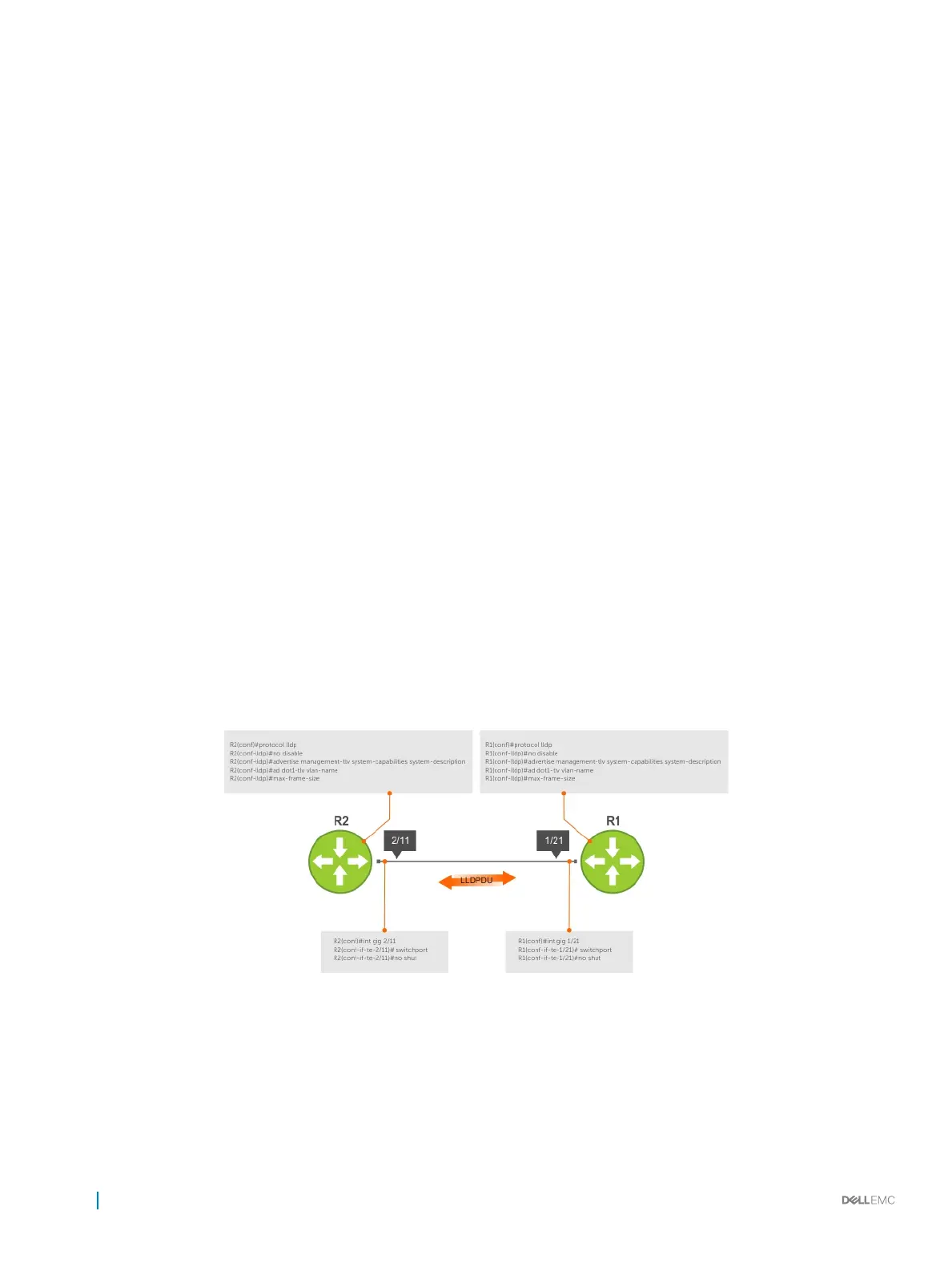 In the following example, LLDP is enabled globally. R1 and R2 are transmitting periodic LLDPDUs that contain management, 802.1, and