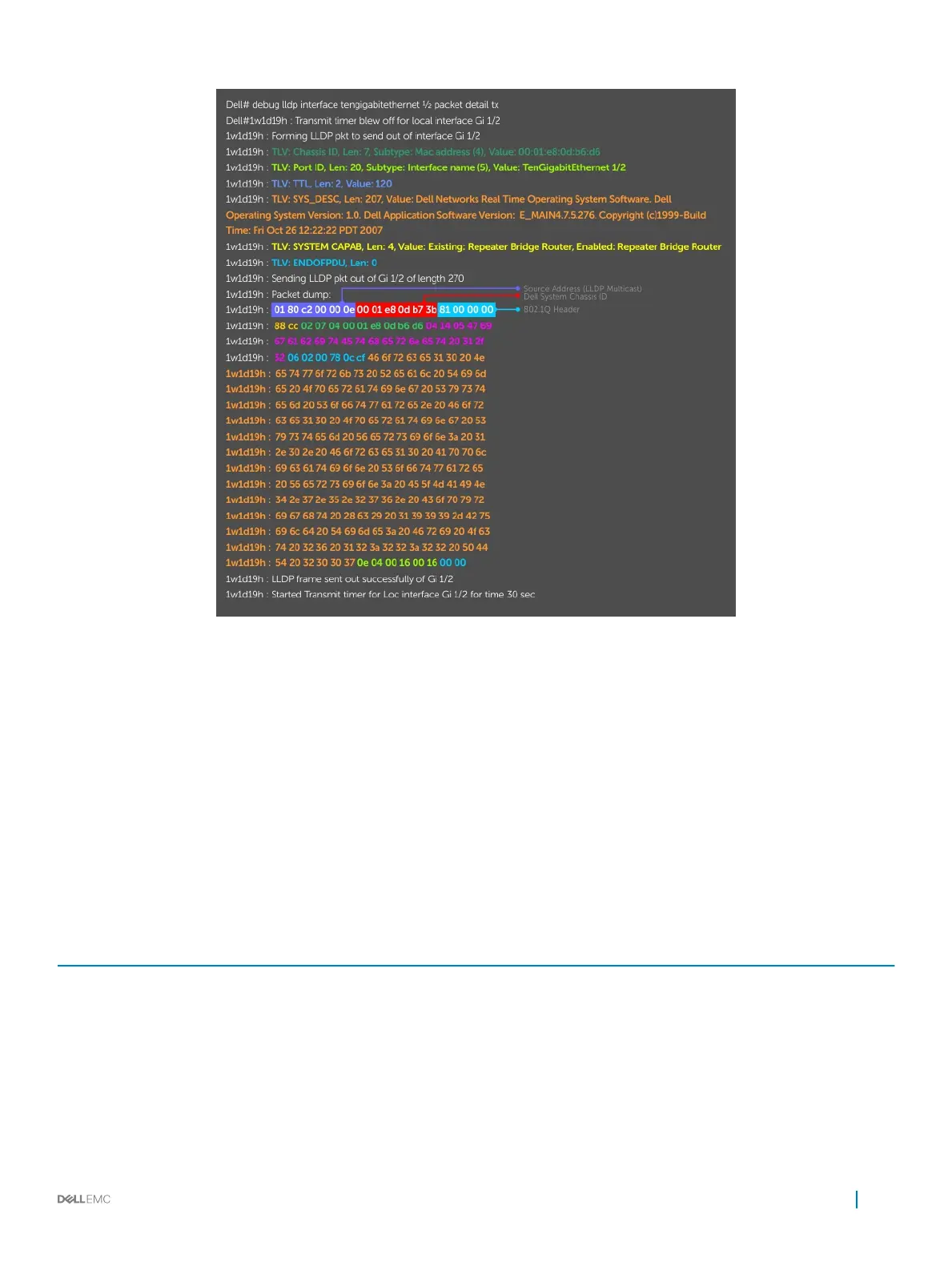Figure 81. The debug lldp detail Command — LLDPDU Packet Dissection