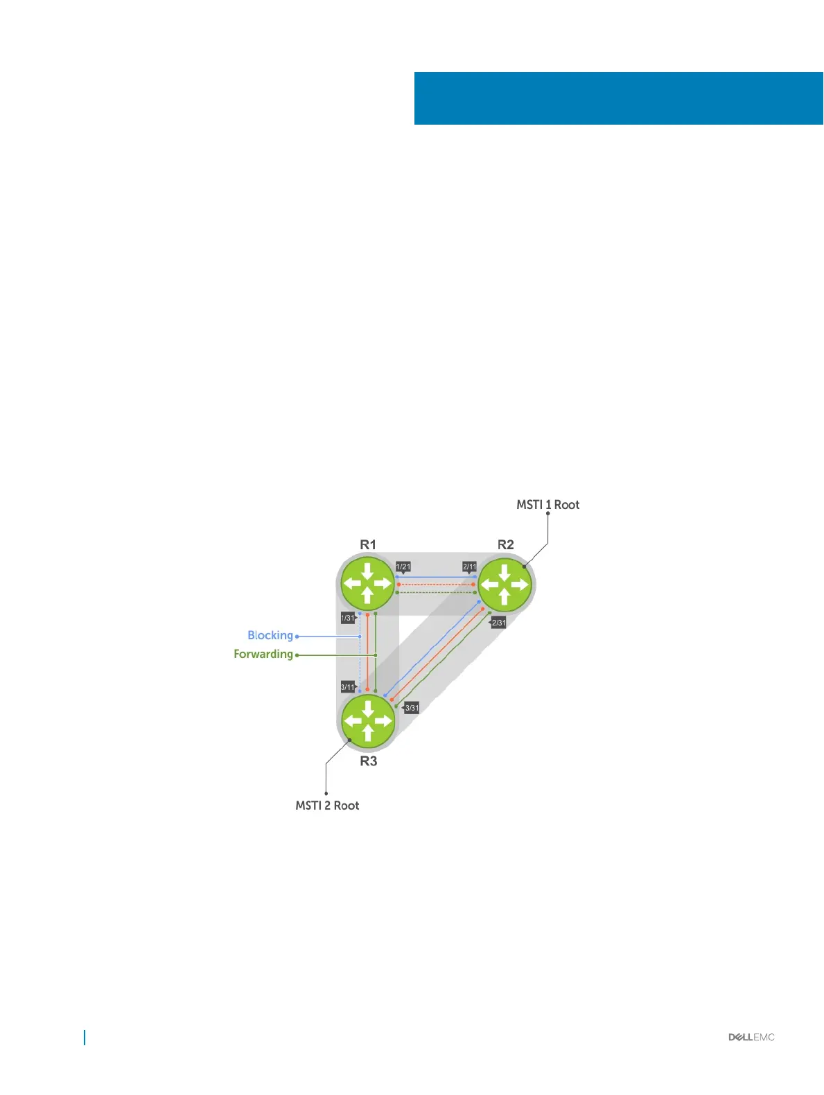 In the following illustration, three VLANs are mapped to two multiple spanning tree instances (MSTI). VLAN 100 trac takes a dierent