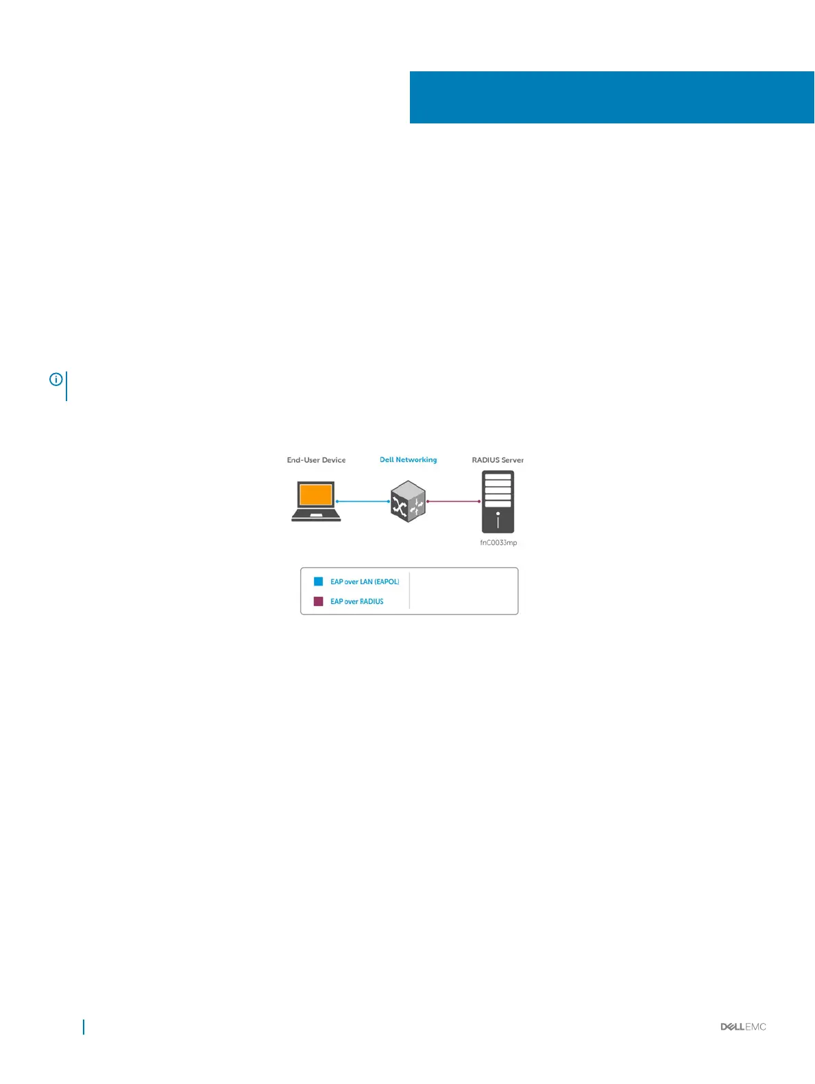 NOTE: The Dell Networking Operating System (OS) supports 802.1X with EAP-MD5, EAP-OTP, EAP-TLS, EAP-TTLS, PEAPv0,