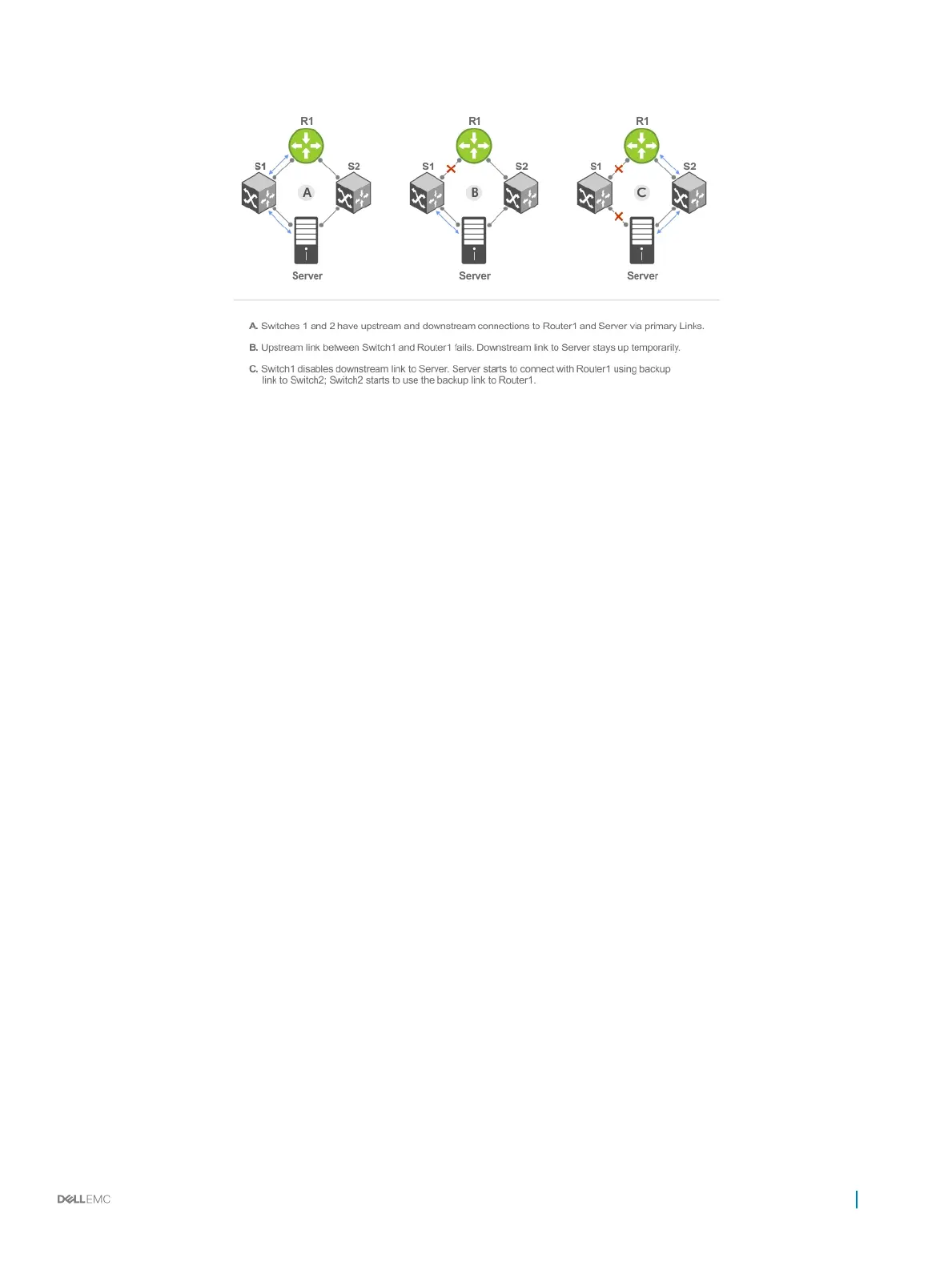 downstream link port to the server. To continue to transmit trac upstream, the server with NIC teaming detects the disabled link and