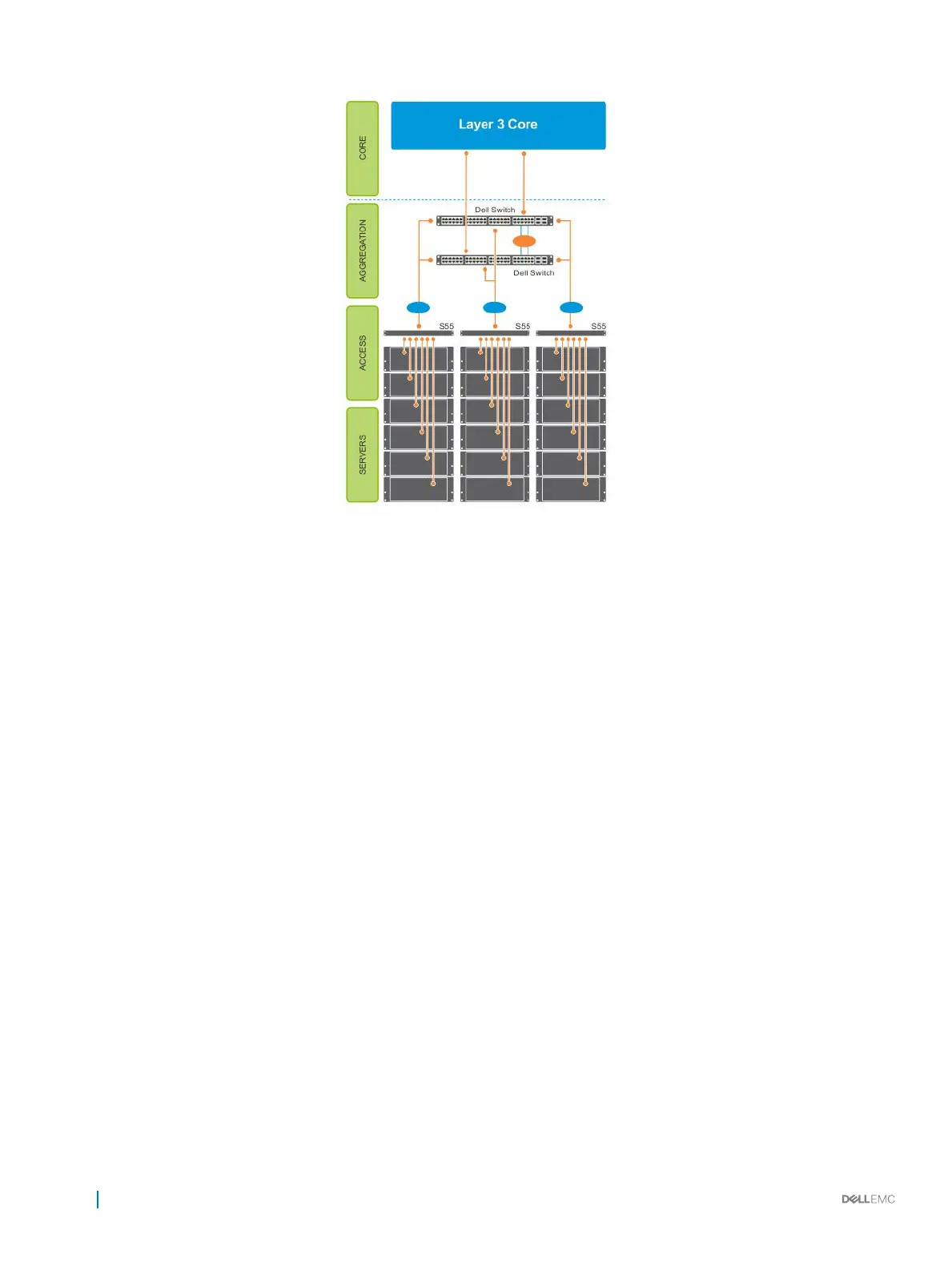 The aggregation layer is mostly in the L2/L3 switching/routing layer. For better resiliency in the aggregation, Dell Networking recommends