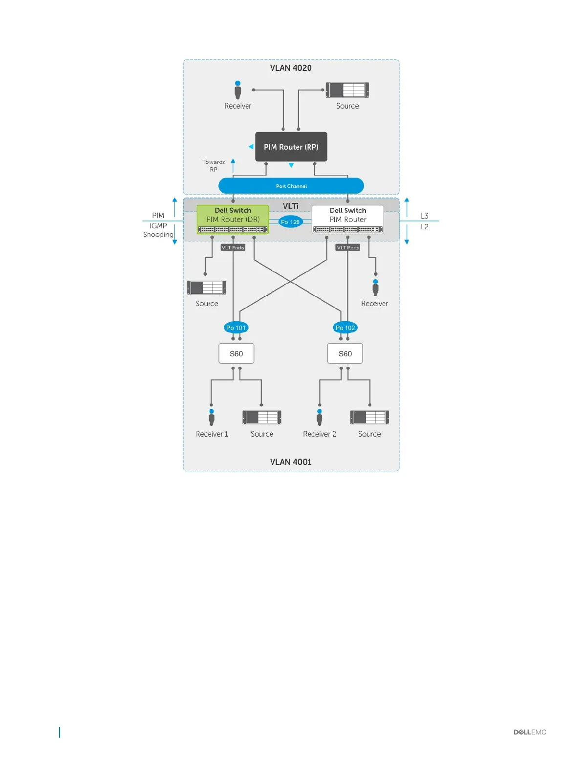 router port on both VLT peer switches. This ensures that for rst hop routers, the packets from the source are redirected to the designated