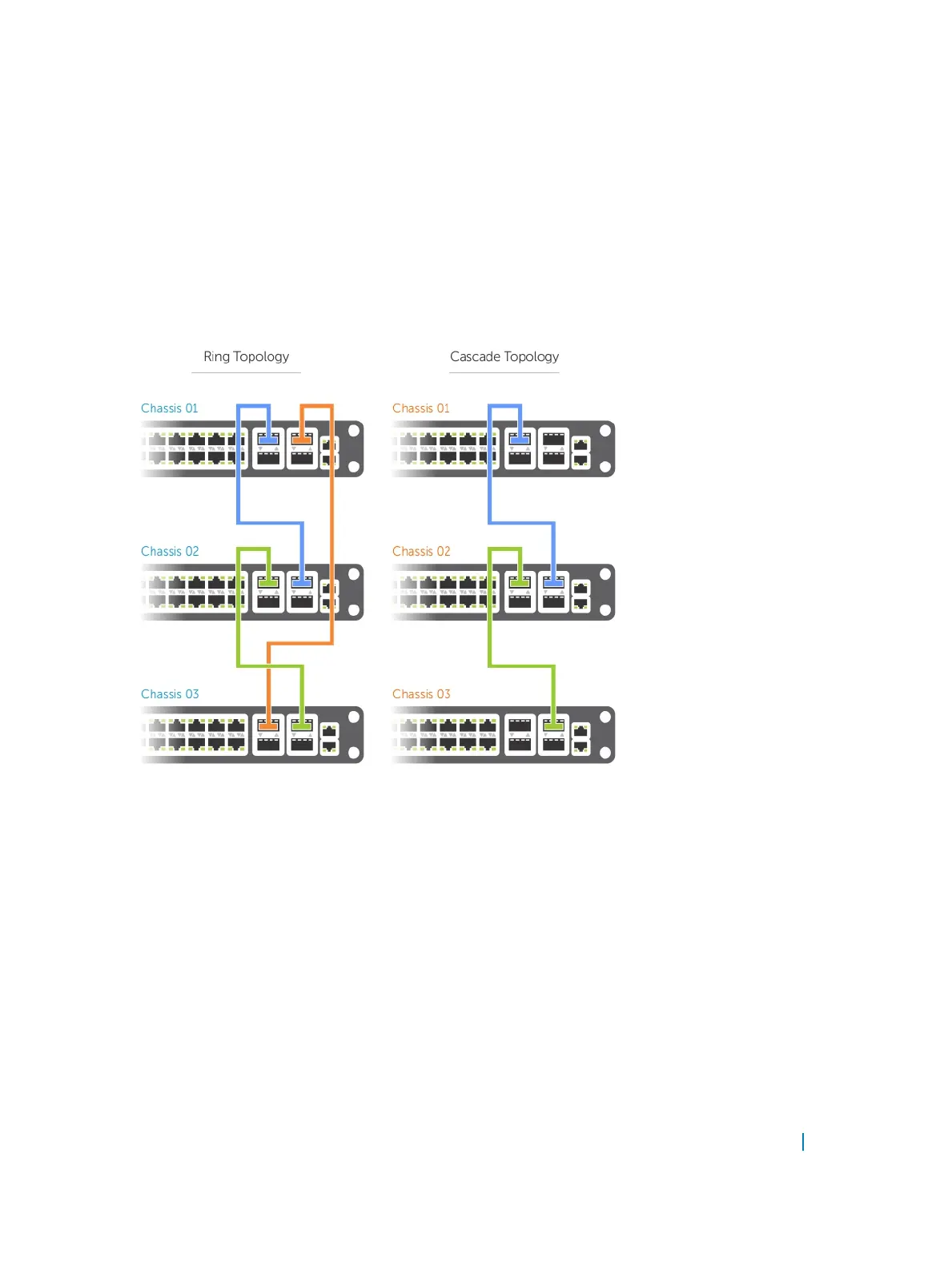 Dell Networking recommends the ring topology when stacking the switches to provide redundant