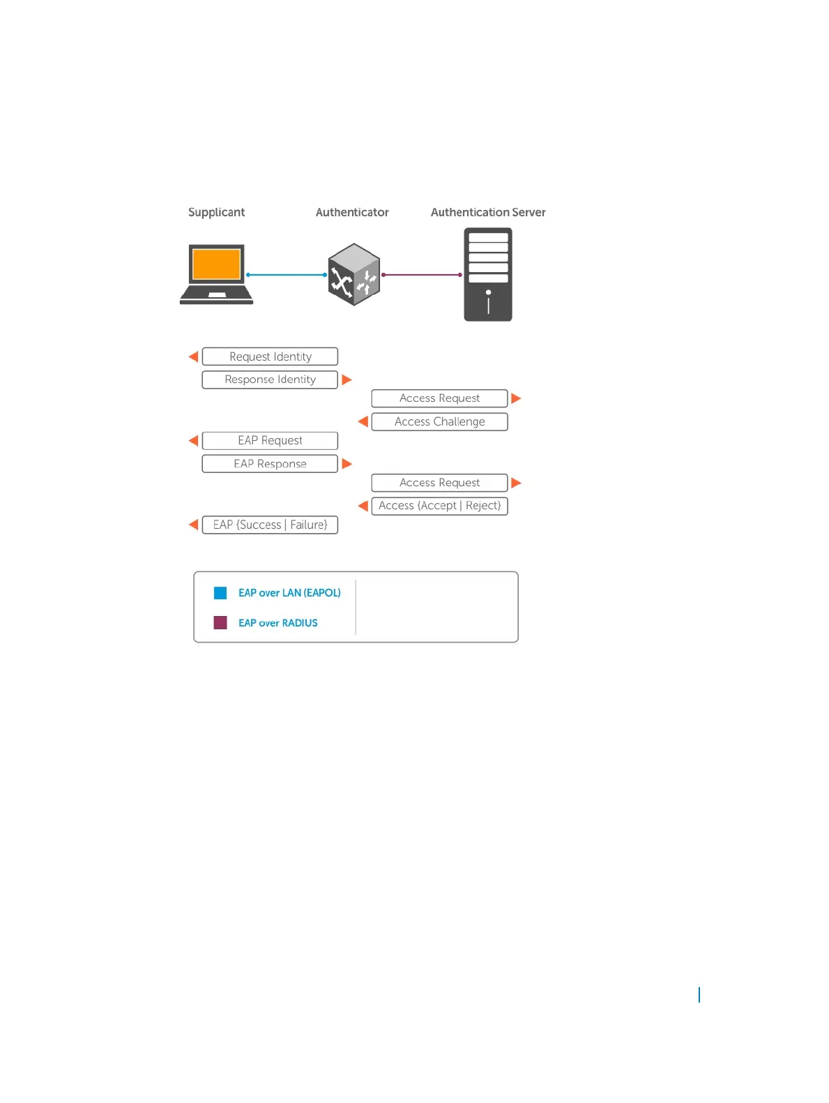 Access-Reject frame. If the port state remains unauthorized, the authenticator forwards an EAP Failure