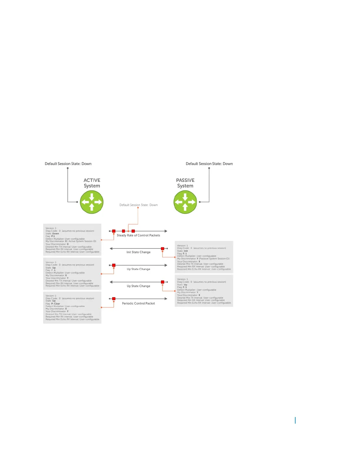 1 The active system sends a steady stream of control packets that indicates that its session state is Down,