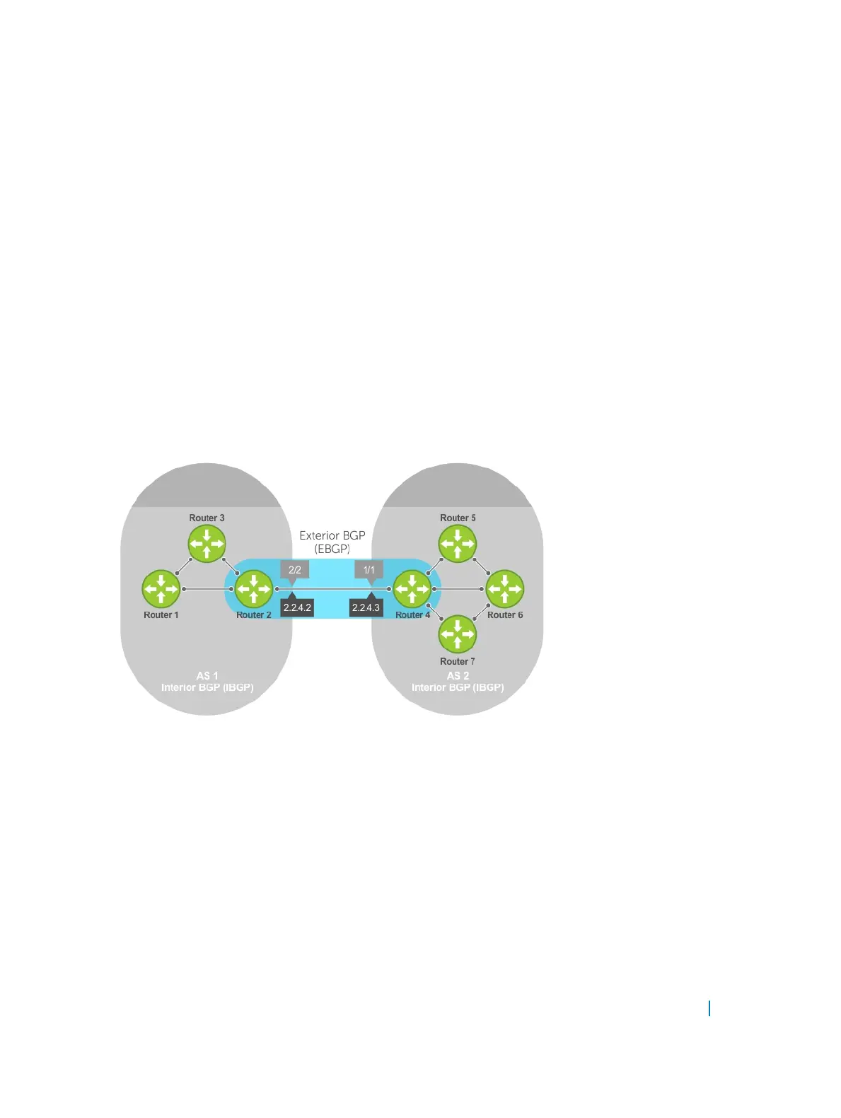 When BGP operates inside an AS (AS1 or AS2, as seen in the following illustration), it is referred to as Internal