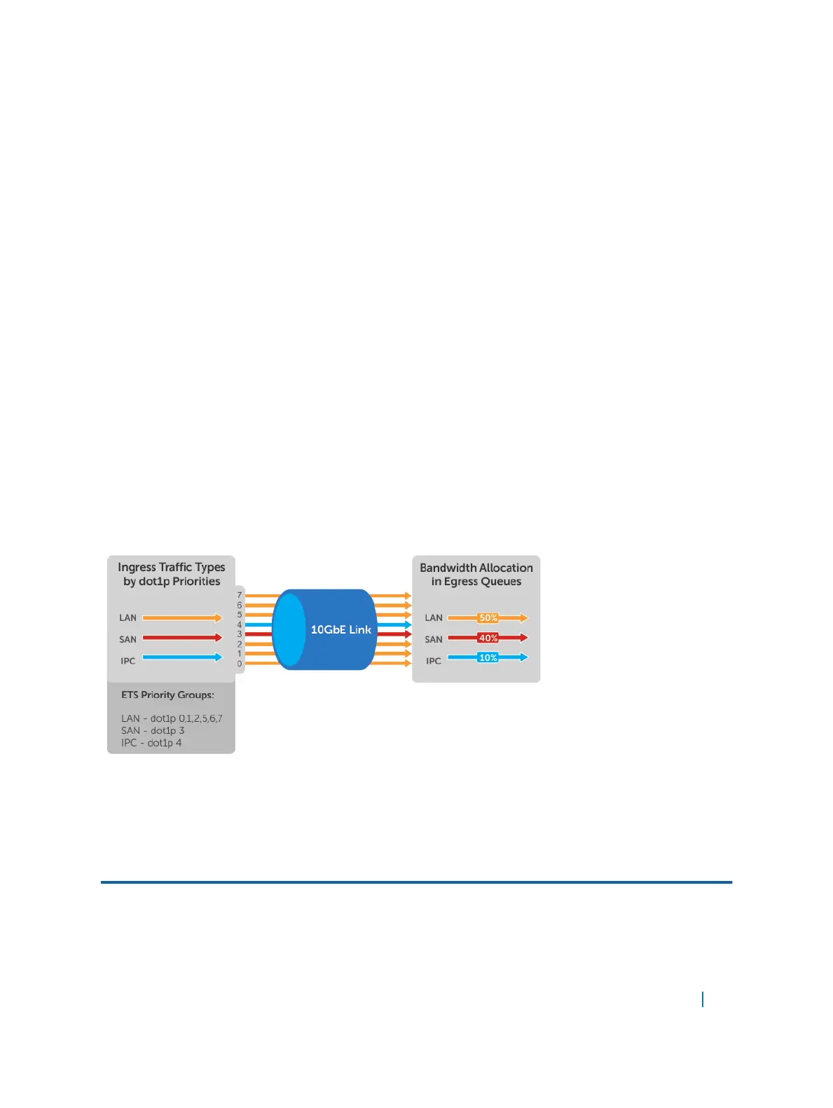 The following figure shows how ETS allows you to allocate bandwidth when different traffic types are classed