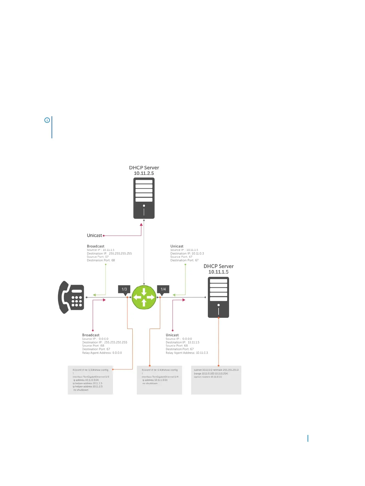 in the following illustration. Specify multiple DHCP servers by using the ip helper-address dhcp-