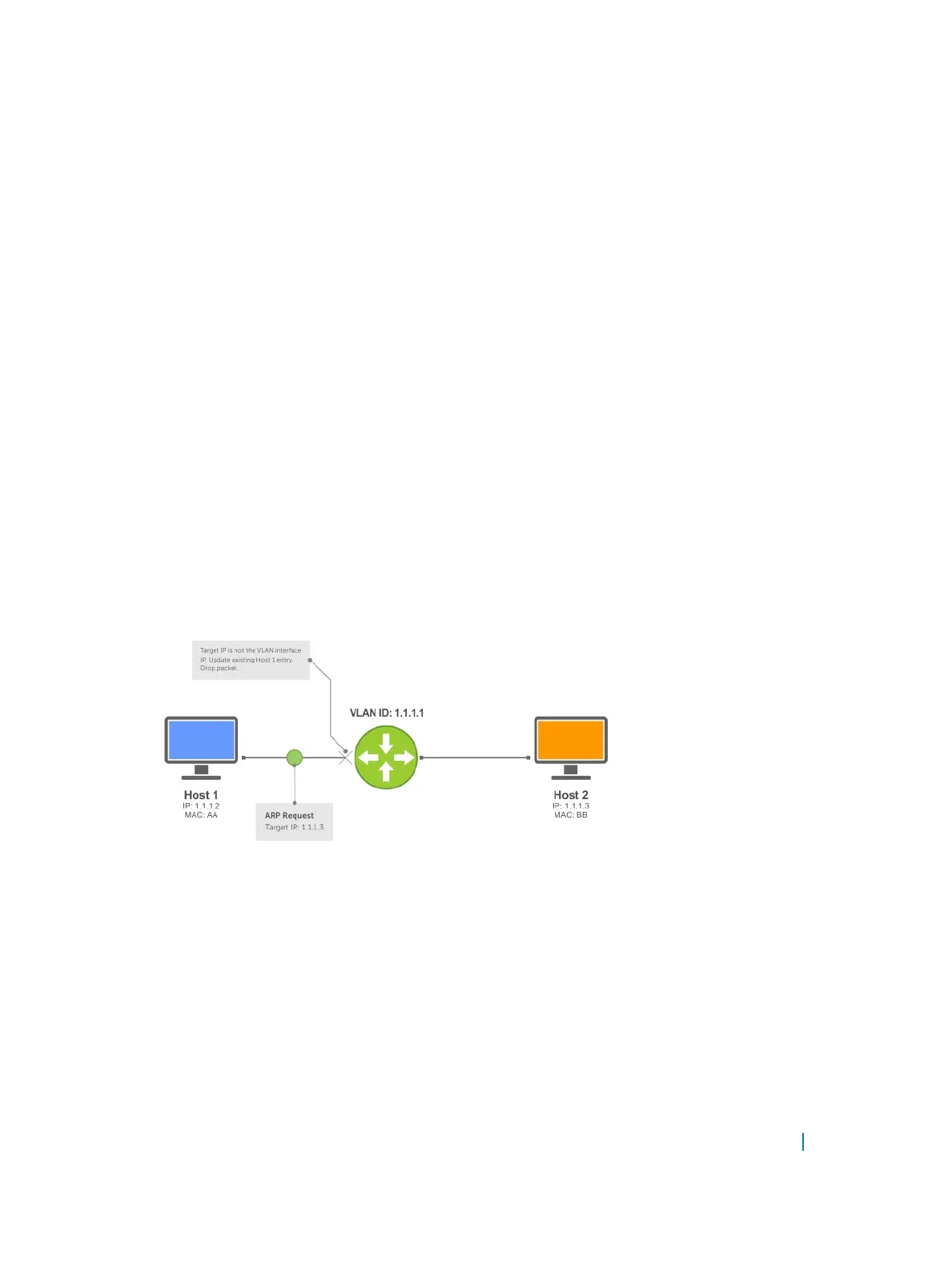 In Dell Networking OS versions prior to 8.3.1.0, Dell Networking OS learns via ARP requests only if the target