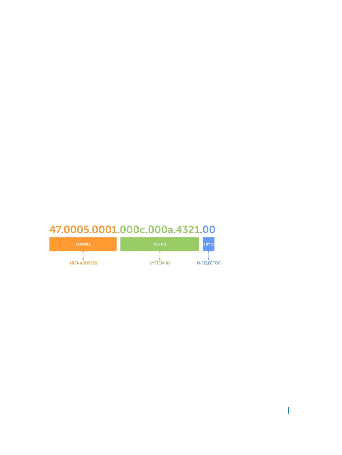 example, the first five bytes (47.0005.0001) are the area address. The system portion is 000c.000a.4321 and