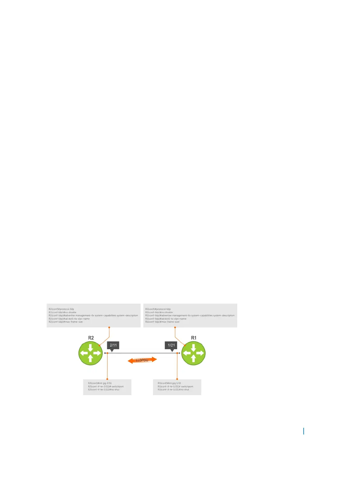 In the following example, LLDP is enabled globally. R1 and R2 are transmitting periodic LLDPDUs that contain