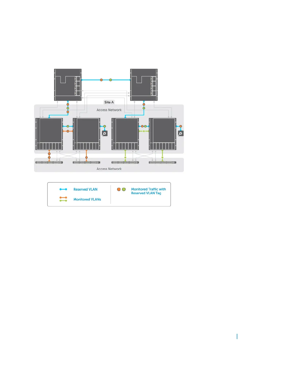 • A remote port mirroring session mirrors monitored traffic by prefixing the reserved VLAN tag to