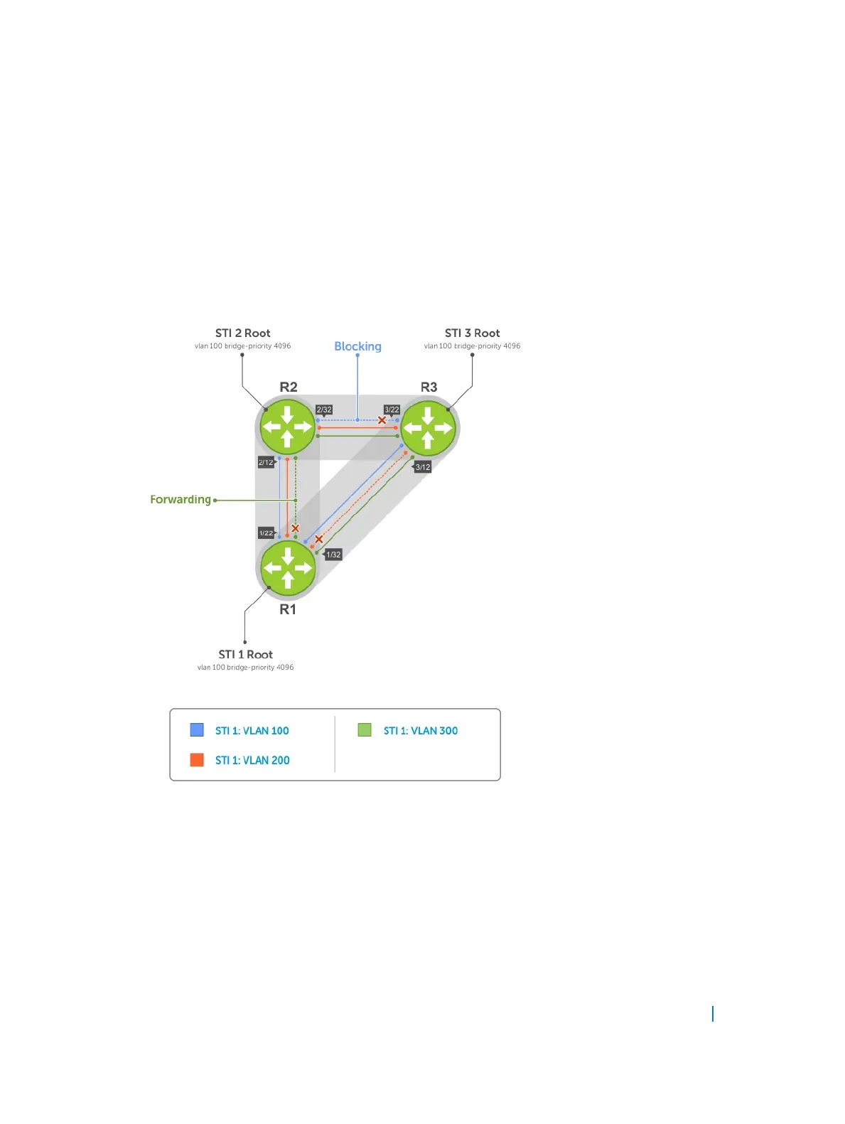 As shown in the previous per-VLAN spanning tree illustration, all VLANs use the same forwarding topology