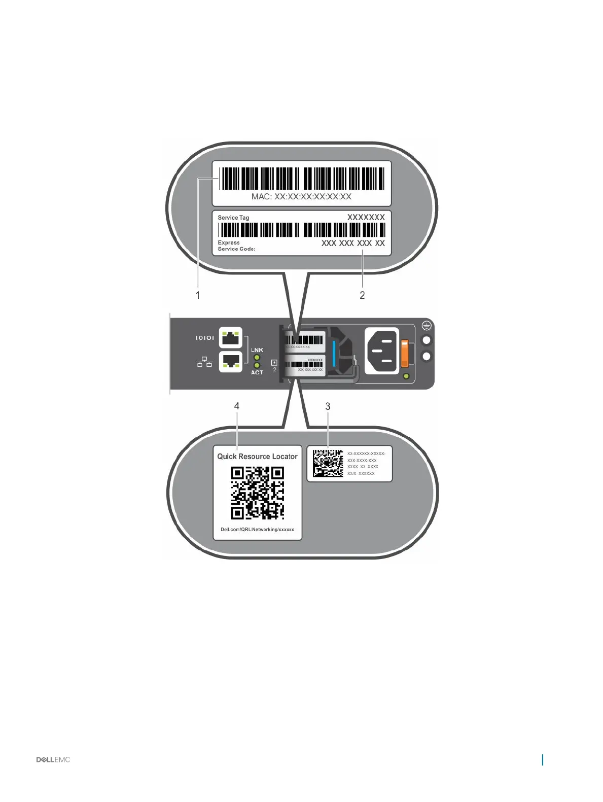 Front: MAC address 2 Front: Service tag and Express service code