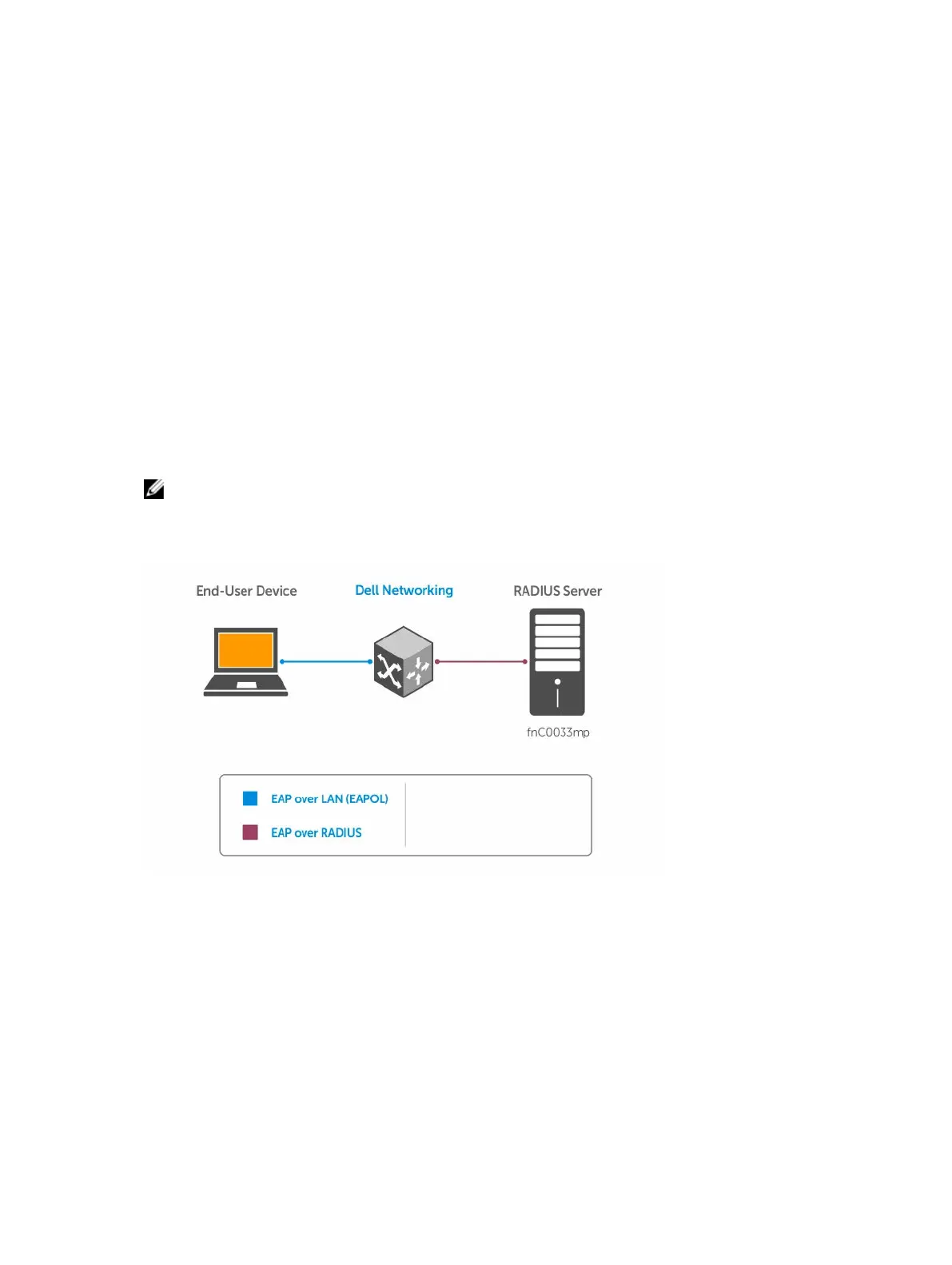 NOTE: The Dell Networking Operating System (OS) supports 802.1X with EAP-MD5, EAP-OTP, EAP-