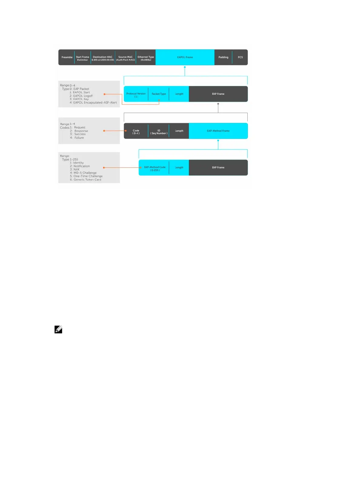 Figure 7. EAP Frames Encapsulated in Ethernet and RADUIS